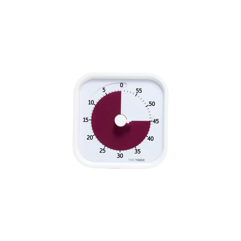 The Time Timer MOD Home Edition is a portable 60-minute visual timer designed to make time easy to understand. Instead of numbers or loud ticking, it uses a colour disk that slowly disappears as time passes. This design is especially engaging for children and ideal for people who benefit from visual structure.